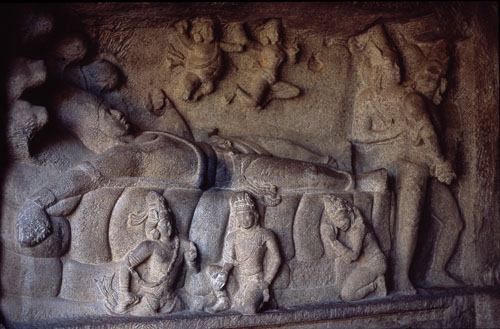 Vishnu in meditativer Versenkung auf der Weltenschlange Ananta in der