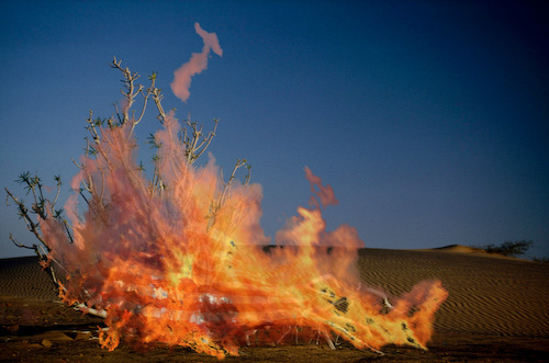 Die Begegnung des Mose mit Gott im brennenden Busch liegt der Bildidee zugrunde.