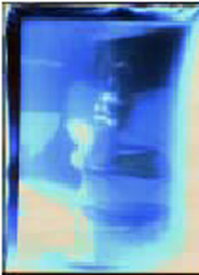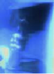 treten durch ein kleines Loch und bilden auf dem Hintergrund negativ