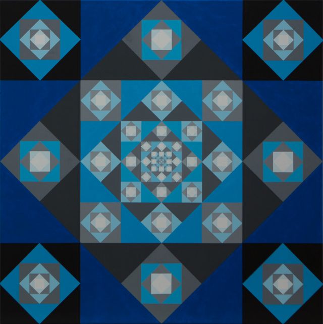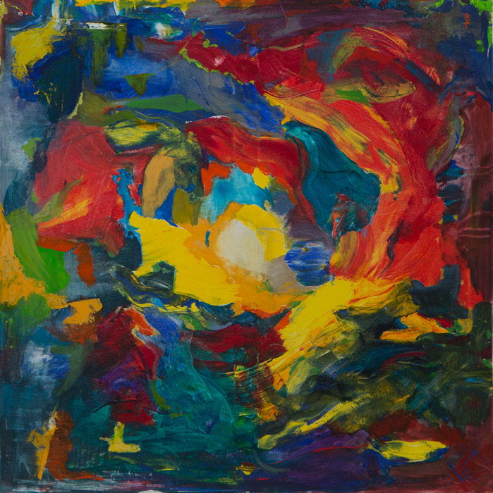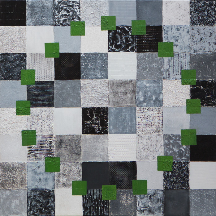 Die Farbwahl war abgesprochen - es sollten nur Weiß und Schwarz und deren Mischungen und jeweils eine andere Farbe mit Abmischungen vorkommen. Das Motiv sollte