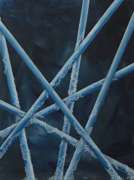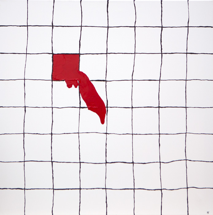 Acryl, Bleistift, Papiertaschentuch auf Leinwand
